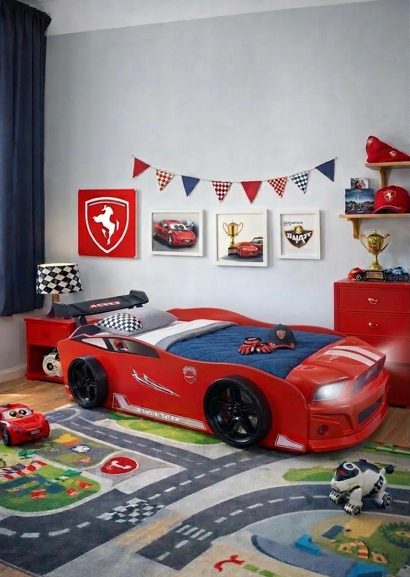 המתנה המושלמת לילד שאוהב מכוניות! מיטת ילדים בעיצוב מרהיב של רכב פורמולה מרוץ – משלבת מראה ספורטיבי, בטיחות מקסימלית ונוחות שינה מעולה.