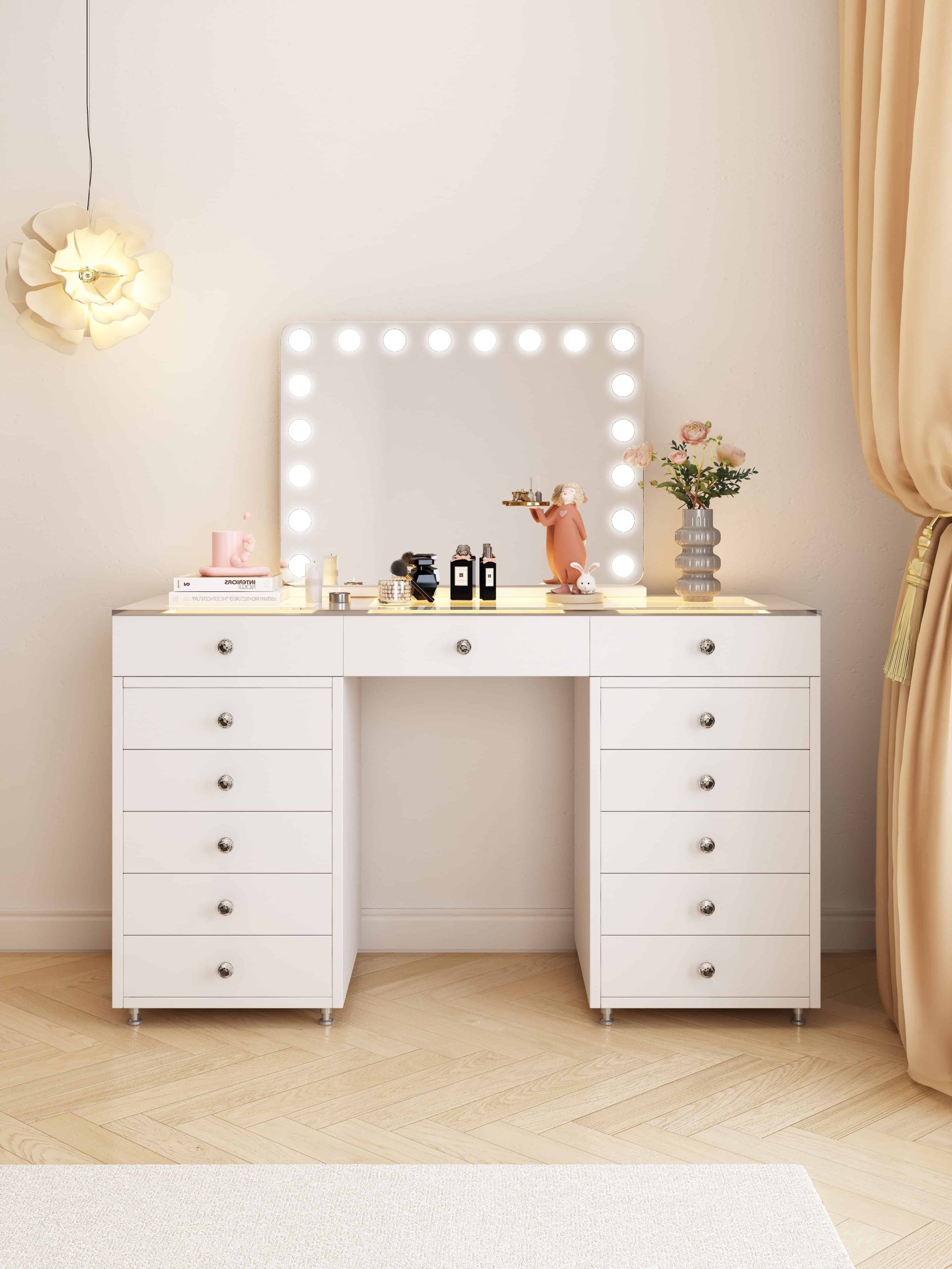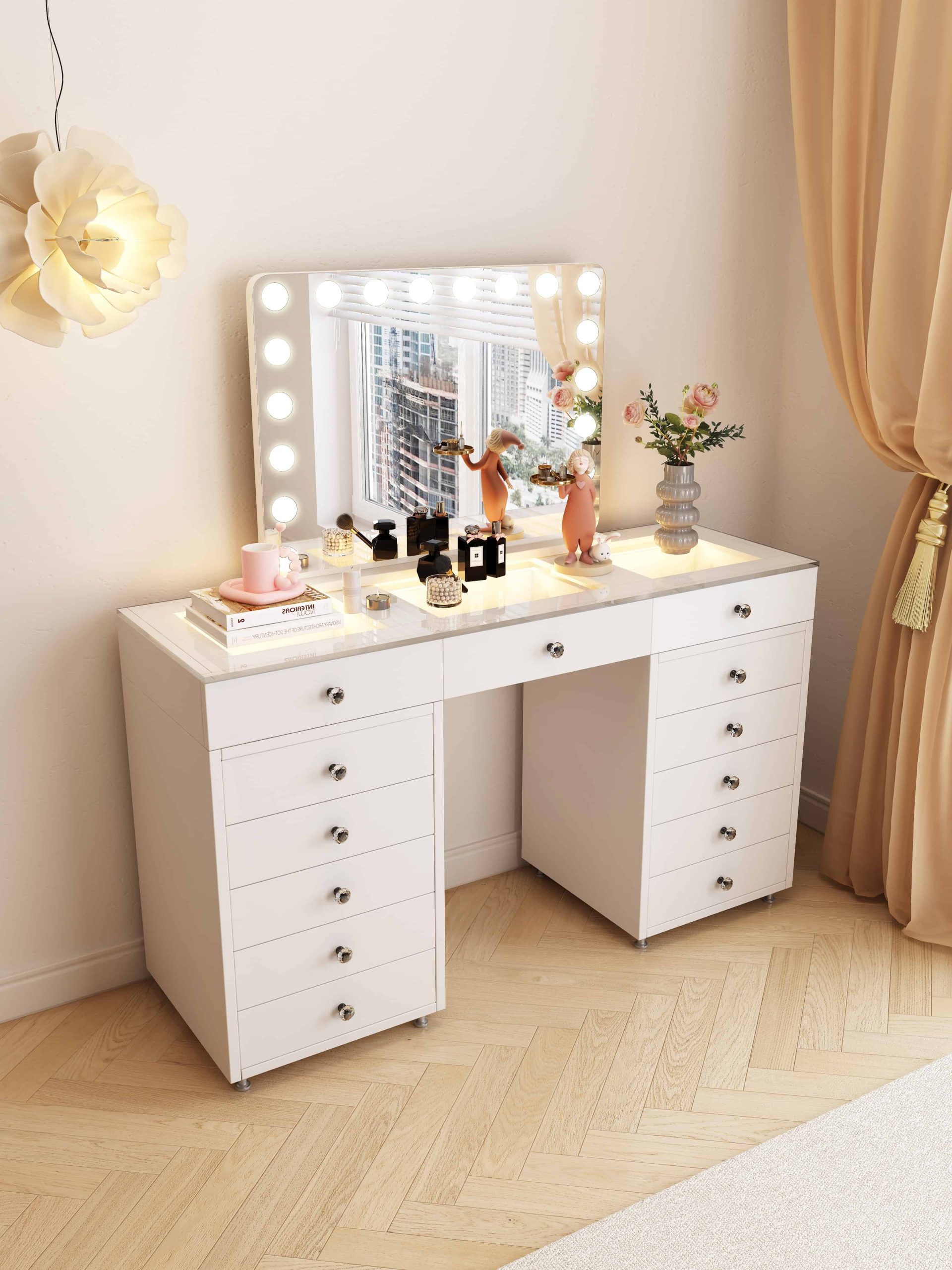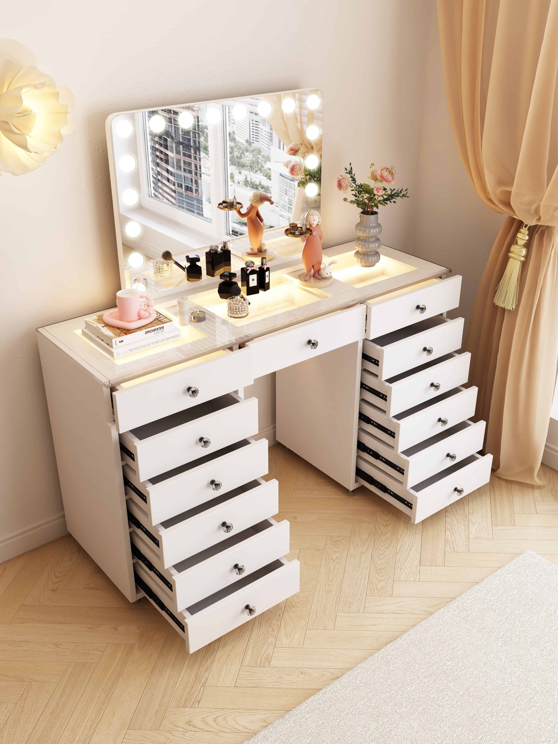 שידת איפור הוליוודית שמביאה את הזוהר הביתה – שילוב של עיצוב מרהיב עם פרקטיות מתקדמת.