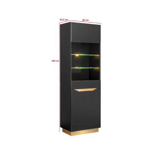 ויטרינה Fame היא שילוב מושלם של עיצוב מודרני ואלגנטי עם מראה יוקרתי. הצבע השחור משי עם נגיעות הזהב מוסיף תחושת יוקרה וחמימות אירופאית, והיא משתלבת בקלות בכל סלון מודרני.