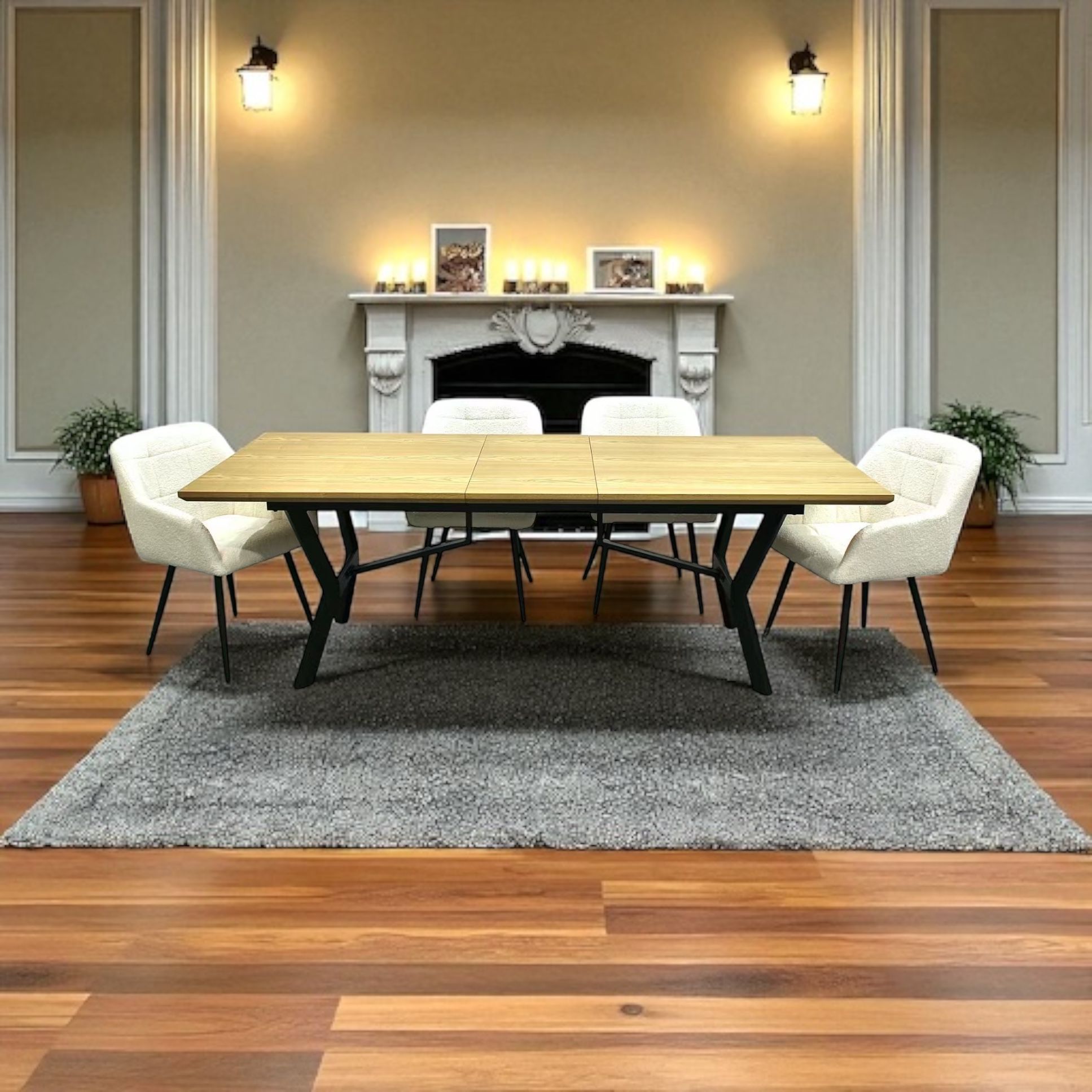 שולחן נפתח בעיצוב מודרני 180/90 עד 3 מטר – דגם רום עם רגלי מתכת ומשטח עמיד